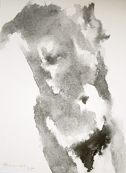 This moving from figurative work to landscapes, only to return once again to figurative painting, is not a new phenomenon in the artist's oeuvre. An examination of his development as an artist will illustrate this. Padamsee's years as a student in India was a time of preparation. He went to Paris in 1951 and already his figuration was under¬going a change. The transformation from the female forms painted in 1951 with their elemental faces like primitive cult objects. and their attenuated bodies to the growing physical presence of the figures was a major one. From 1955 onwards, the defining contours began to disappear. The canvases grew in size and the figures became more and more massive.