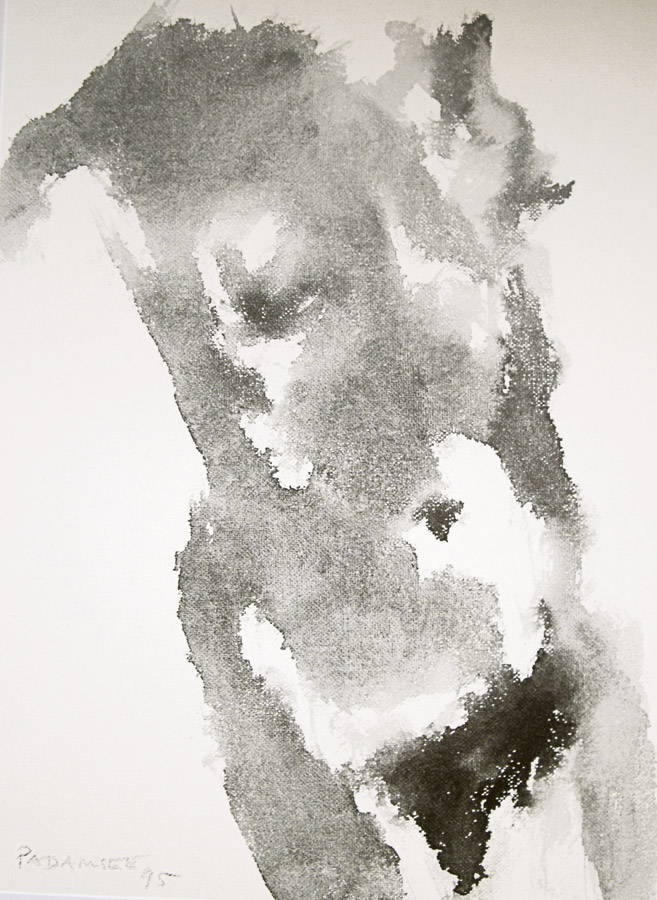 Padamsee, draws his figures and forms from the world around him that he knows intimately, but he invests them with a profound sense of alienation. They are not heroic creatures, nor are they angst –ridden, shattered beings. They exist, and on their flesh and bones is stamped the experience of living.