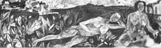Akbar Padamsee: The idea of using the sun and moon in my metascapes originated when I was reading the introductory stanza to Abhijnanashakuntalam. Here Kalidasa speaks of the eight visible forms of the Lord without mentioning them by name, the sun and the moon as the two controllers of time, water as the origin of all life, fire as the link between man and god, and the earth as the source of all seed. This is the subjection of the denotative sense to a poetic meaning. Through this process, the artist deals with reality without describing it; when poetic meaning is superimposed upon the sign a new form arises - this belongs to the mind of the artist,not to nature.