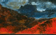 “The subject matter is chosen to allow possibility of using colour, “ Padamsee says”,but there must be something uncanny there. Unless it is a disquieting,uncanny landscape I would reject it,” This preoccupation with “disquieting feeling” links various phases of Padamsee’s landscape painting, though at first sight they appear to vary greatly in the formal means used. For instance, the sun and moon flood the cityscapes of the Horizon paintings with an unearthly light. This gives the paintings a quality of an hallucination, despite what appears to be the reassuring warmth of sumptuous colour. Both in these landscapes and the “sun and moon metascapes”, painted in the ‘seventies, the colours are offset by blues that are electrifying as well as suffused with darkness. “ Blue is not only the colour of the sky,” Padamsee says, “ but can be make to project itself forward, contrary to its receding nature and possesses a psychological dimension, to evoke in the viewer a special feeling or mood. A tension between colour and colour creates planar movement, absence of the complementary creates expectation leading the mind into a quest of the imagination.”