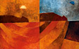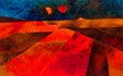 “The subject matter is chosen to allow possibility of using colour, “ Padamsee says”,but there must be something uncanny there. Unless it is a disquieting,uncanny landscape I would reject it,” This preoccupation with “disquieting feeling” links various phases of Padamsee’s landscape painting, though at first sight they appear to vary greatly in the formal means used. For instance, the sun and moon flood the cityscapes of the Horizon paintings with an unearthly light. This gives the paintings a quality of an hallucination, despite what appears to be the reassuring warmth of sumptuous colour. Both in these landscapes and the “sun and moon metascapes”, painted in the ‘seventies, the colours are offset by blues that are electrifying as well as suffused with darkness. “ Blue is not only the colour of the sky,” Padamsee says, “ but can be make to project itself forward, contrary to its receding nature and possesses a psychological dimension, to evoke in the viewer a special feeling or mood. A tension between colour and colour creates planar movement, absence of the complementary creates expectation leading the mind into a quest of the imagination.”